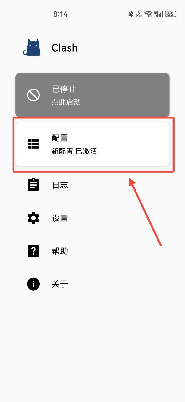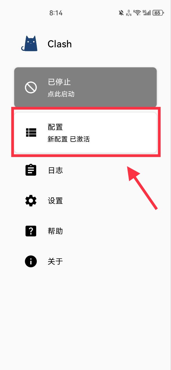 打开 Clash点击“配置”