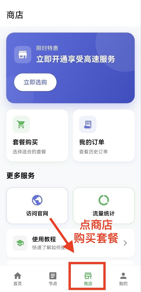 点击“商店”购买套餐